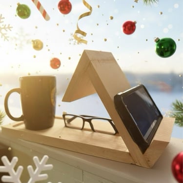Completely customizable book nook. Pictured is a cup holder, glasses holder and book holder, but we can add lights, plugs, magnets, etc. Just tell us what you want!