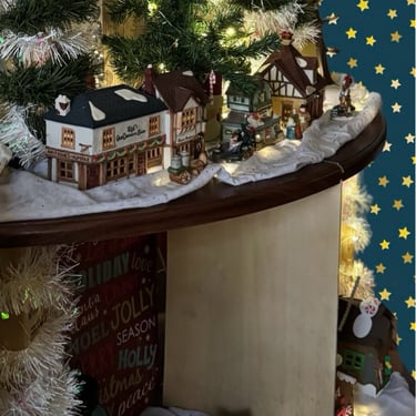 Progressively smaller shelves made out of a broken kitchen table.
